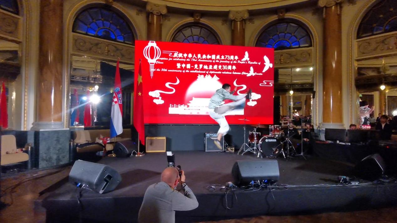 應薩格勒布大學孔子學院和中國駐克羅地亞大使館邀請,我校在克羅地亞進行聯合培養的博士研究生金峰先后于2022年9月28日和29日出席薩格勒布大學孔子學院成立10周年慶典和慶祝中華人民共和國成立73周年暨中國-克羅地亞建交30周年招待會,并表演中國武術和舞獅節目。金峰同學為我校中國武術學院2019級學生,自2022年6月起獲國家留學基金委資助公派赴克進行學習和交流。