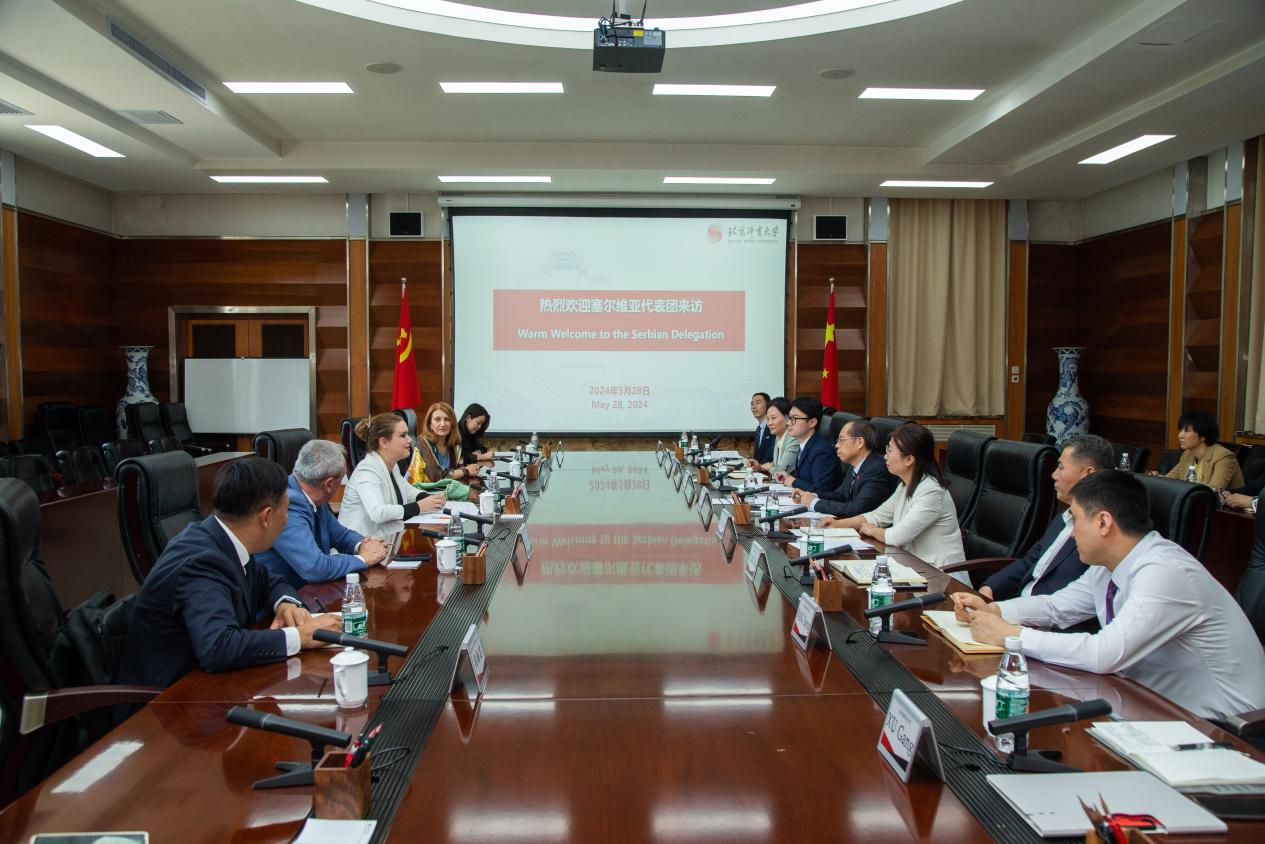 張劍代表北京體育大學向代表團一行的到訪表示歡迎。他表示,中塞“鐵桿友誼”深入人心。本月初,國家主席習近平對塞爾維亞進行國事訪問。習近平主席和武契奇總統共同簽署關于深化和提升全面戰略伙伴關系、構建新時代中塞命運共同體的聯合聲明,宣布中方將在未來3年邀請300名塞爾維亞青少年赴華學習等重要舉措,實現了中塞關系新的偉大歷史跨越。我校歡迎塞爾維亞學生來校交流學習,希望在中外合作辦學、康復中心共建、師生交流、預科項目、交換生項目、聯合培養等方面探討合作的可能性。他期待與齊羅耶維奇助理部長一道,共同落實好兩國領導人共識,推動中塞關系發展不斷取得新成果。