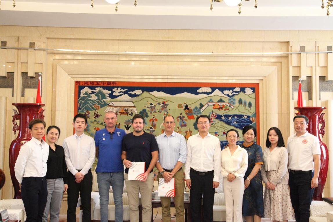 9月14日上午,法國體育俱樂部主席大衛·甘亞茲(David GUIGAZ)率代表團一行6人來我校交流訪問。黨委常委、副校長王良玉會見代表團。