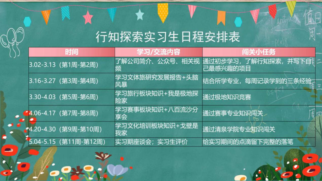 實習基地經過反復打磨,制定了實習生線上培訓方案。一個月線上課程,每天2節課,實習生要接受體驗地圖、硬核技能、軟實習、基礎技能四大模塊的培訓,辦公軟件的培訓使用、營地建設、營地運營管理、到皮劃艇、漿板等等都是必修課,可謂收獲頗豐。