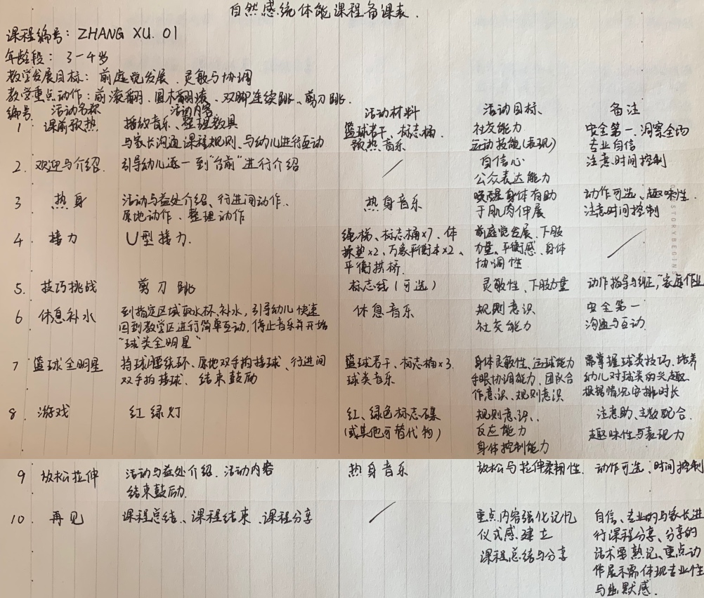 實習隊員系統學習了自然感統體能體驗課的課程內容,課程教案的撰寫以及課程研發的理論與方法等。實習隊員每周三、五開兩次網絡會議,對每周的實習任務進行總結和匯報,隊員們各抒己見,表達自己對實習安排的見解,對教案的理解等。八周的實習工作結束后,同學們的努力得到了實習基地指導老師的肯定,相信在未來的工作中,自然感統體能體系會成為隊員們的一大助力。