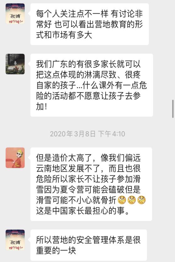 同學們每周認真完成作業,潘老師則圍繞作業內容與行業現狀與實習隊員以網絡會議的形式進行探討,為同學們耐心答疑解惑。通過兩個月的線上實習,實習成員從宏觀上了解和學習了營地教育的現狀與未來,既增長了見識,更開拓了眼界。