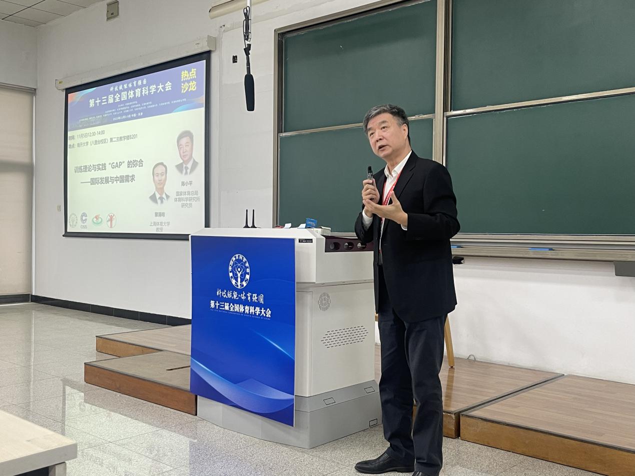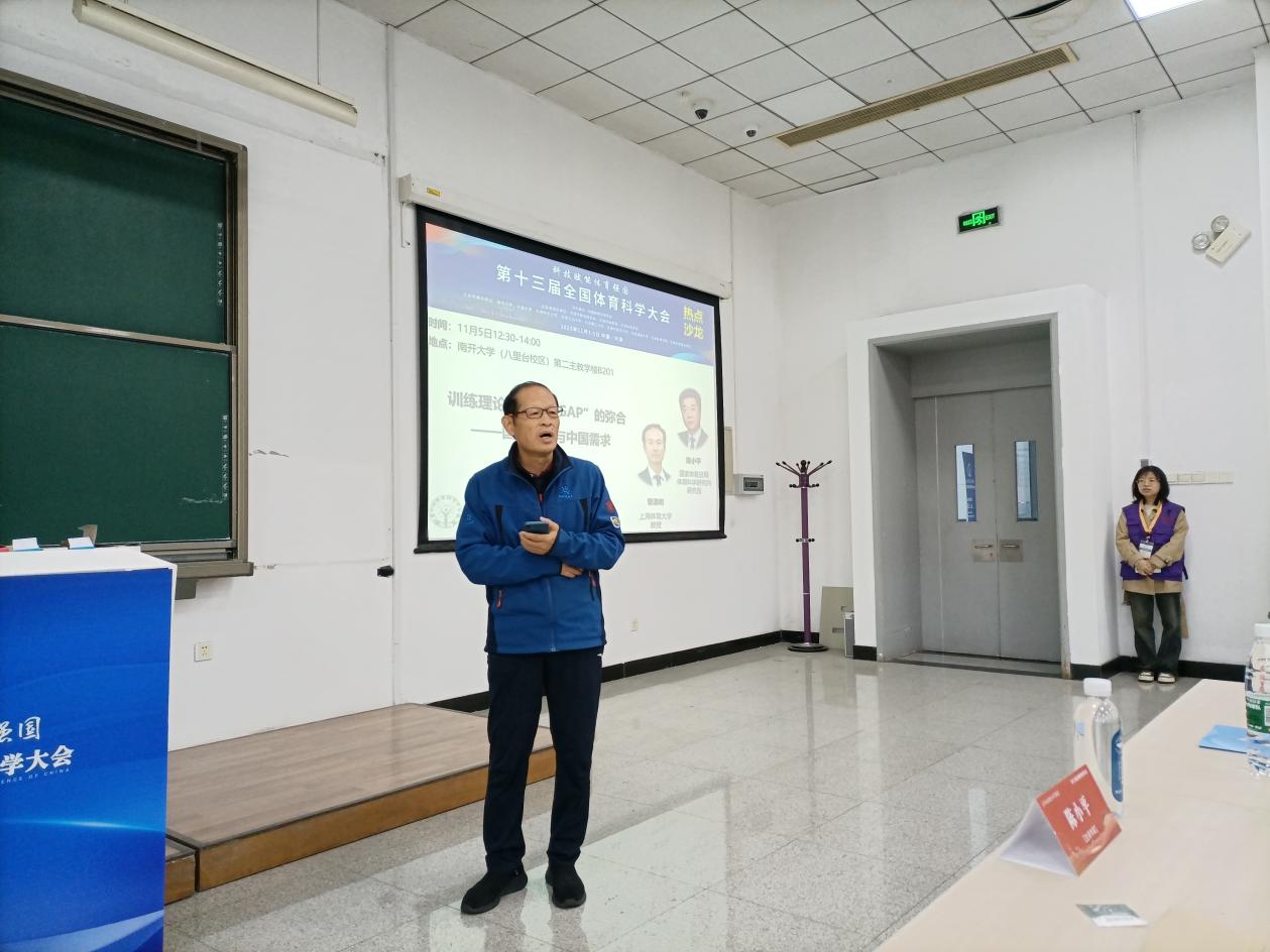 2023年11月3日-5日,第十三屆全國體育科學(xué)大會(huì)于天津成功舉辦。11月5日中午,由中國體育科學(xué)學(xué)會(huì)學(xué)術(shù)工作委員會(huì)承辦的“訓(xùn)練理論與實(shí)踐GAP的彌合——國際發(fā)展與中國需求”的熱點(diǎn)沙龍?jiān)谀祥_大學(xué)(八里臺(tái)校區(qū))順利召開。學(xué)術(shù)工作委員會(huì)秘書長、北京體育大學(xué)張力為教授首先介紹了沙龍主持人和報(bào)告人,學(xué)術(shù)工作委員會(huì)副主任委員、國家體育總局科研所特聘研究員陳小平擔(dān)任沙龍主持人,上海體育大學(xué)黎涌明教授做引導(dǎo)性報(bào)告。