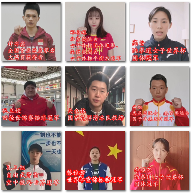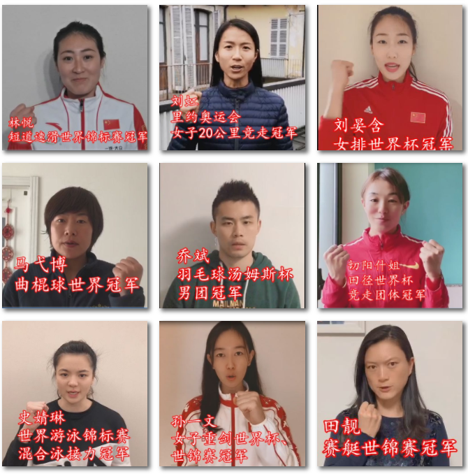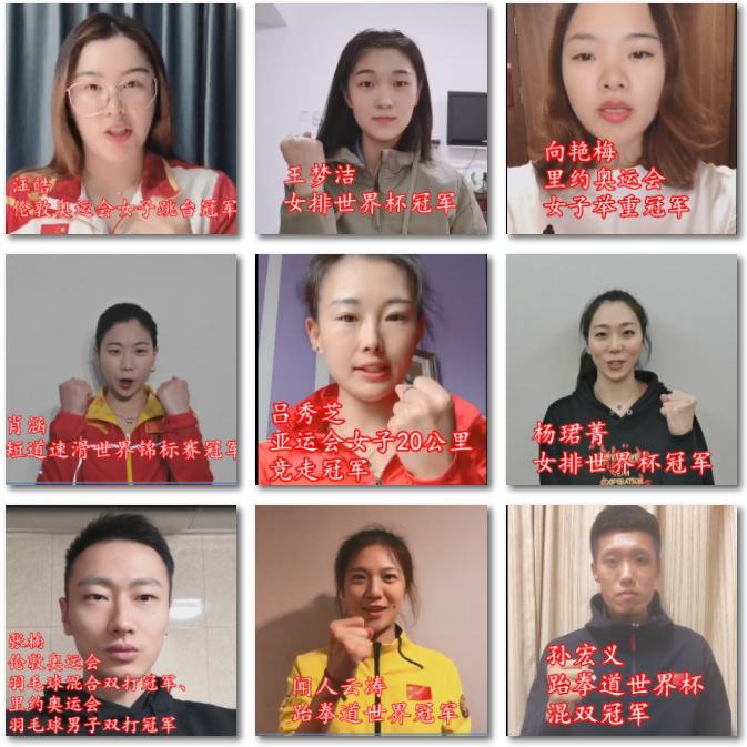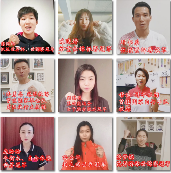 他們是北京體育大學研究生冠軍班同學!他們在不同的地方,他們都心系武漢!使命在肩,眾志成城!冠軍力量,戰勝疫情!武漢加油!中國加油!