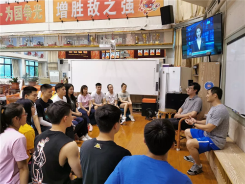 學習討論前,大家再次觀看了新聞聯播關于習近平總書記給我校冠軍班回信的報道。雖然這段視頻已經不是第一次看了,但是老師和同學們依然十分激動,訓練館里響起熱烈掌聲。