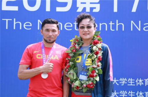 阿力木江·熱合麥提與訓練競賽處唐國麗老師(右)