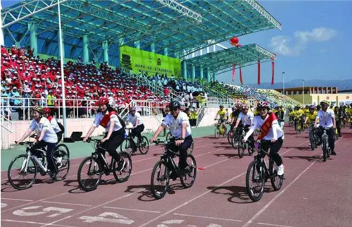 6月28日,根據(jù)國家體育總局2019年扶貧工作任務(wù)和學(xué)校扶貧工作計劃,作為協(xié)辦單位我校共派出3名在職和在讀的奧運冠軍和6名學(xué)生運動員參加了“2019中國·代縣·雁門關(guān)國際騎游大會”。本次騎游大會也是北京體育大學(xué)“奧運冠軍萬里行”扶貧活動的重要一站,2004年雅典奧運會女子跆拳道冠軍陳中,2000年悉尼奧運會女子雙人10米跳臺冠軍李娜,北京體育大學(xué)研究生冠軍班學(xué)生、2008年北京奧運會女子體操團(tuán)體冠軍楊伊琳共同揮舞起全民健身的大旗,在劃破晴空的鳴笛聲中,引領(lǐng)著建國七十周年紅騎代州的騎游隊伍浩浩蕩蕩向雁門關(guān)進(jìn)發(fā)。