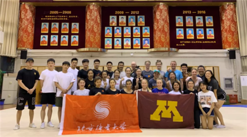 2019年5月30日晚,美國明尼蘇達大學的大學生來到北京體育大學與校健美操代表隊的隊員們進行了一次愉快的訓練交流活動。此次活動拉近了中美學生之間的距離,促進了雙方的交流與溝通,讓來自美國的交流生們感受到北京體育大學是生的熱情和中華傳統(tǒng)文化的博大精深。