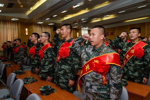 我校是一所具有光榮紅色基因的高校,是在毛澤東、劉少奇、周恩來、朱德、鄧小平、賀龍等老一輩黨和國家領導人的親切關懷下建立并發展起來的。1955年賀龍元帥來校視察時,曾向當時的校領導提議在體育系的教學計劃中增加軍事課程,其中包括最基礎的射擊項目,讓學生畢業時除了達到本科畢業生的基本要求外,還可以同時達到預備役軍官的水平。這一嘗試可以算作是最早的體育教學與軍事訓練的“跨界組合”。2017年,習近平總書記在勉勵新入伍大學生的回信中寫道:“希望你們珍惜身穿戎裝的機會,把熱血揮灑在實現強軍夢的偉大實踐之中,在軍隊這個大舞臺上施展才華,在軍營這個大熔爐里淬煉成鋼,書寫絢爛、無悔的青春篇章?!苯衲暾敌轮袊闪?/span>70周年,入伍學子們決心發揚“使命在肩、奮斗有我”的精神,以自己堅實的意志來親身踐行報效祖國的誓言。