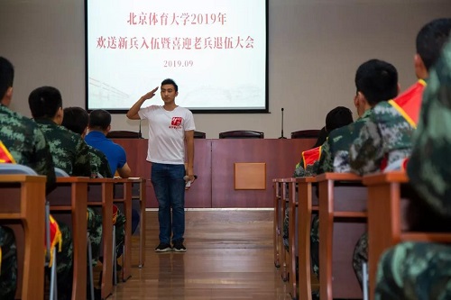 會上,來自競技體育學院的老兵代表修敬軒表示:“感謝兩年的軍旅生涯成就了我的金色年華,也培養了我作為戰士的博大情懷?!彼銊钚卤鴤儯骸跋M蠹铱梢允冀K發揚北體大‘追求卓越’的精神,不怕苦不怕累,攜筆從戎,矢志強軍,成為一名政治過硬、軍事過硬、作風優良的優秀戰士?!眮碜越逃龑W院即將入伍的新兵代表張國強談到:“作為一名新兵,我心中十分驕傲和光榮。懷揣著希望和激情踏入軍營的我們一定會刻苦訓練、努力學習、服從組織,盡快從學生成長為一名軍人,發揚‘使命在肩、奮斗有我’的精神,將滿腔熱情化為報國之志,用行動保衛祖國安寧。”