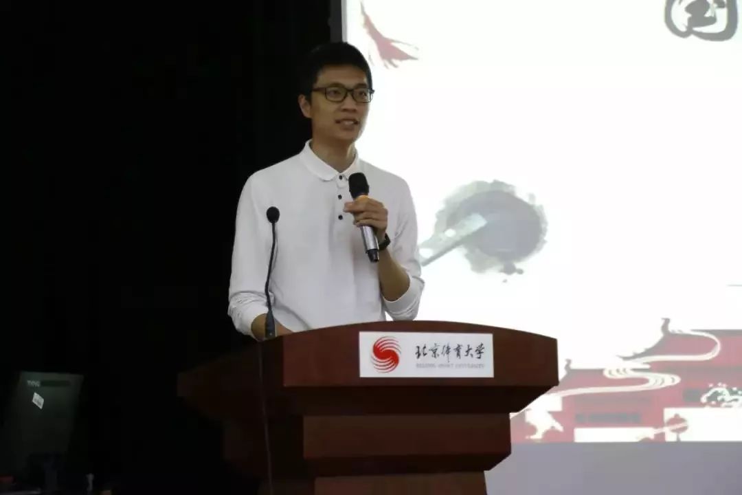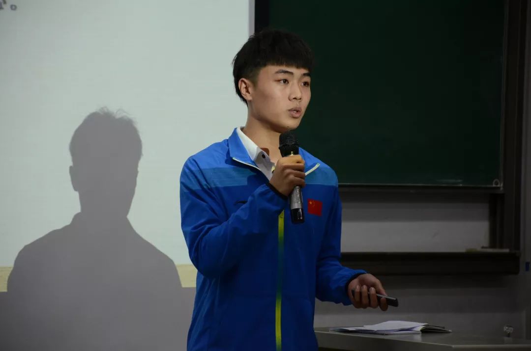 “青春萬歲”自行車方陣的代表,來自國際體育組織學院2018級的李昱震同學表示國慶閱兵后,各大媒體和網友對自行車方陣的表演一致好評。他向大家介紹了自行車方陣的由來和方陣陣型、排練背后的小故事以及設計郵遞員這一角色背后的意義。李昱震同學的生動講述,讓參會的同學們切實感受到“史詩級浪漫”方陣背后的堅持、汗水與精神。