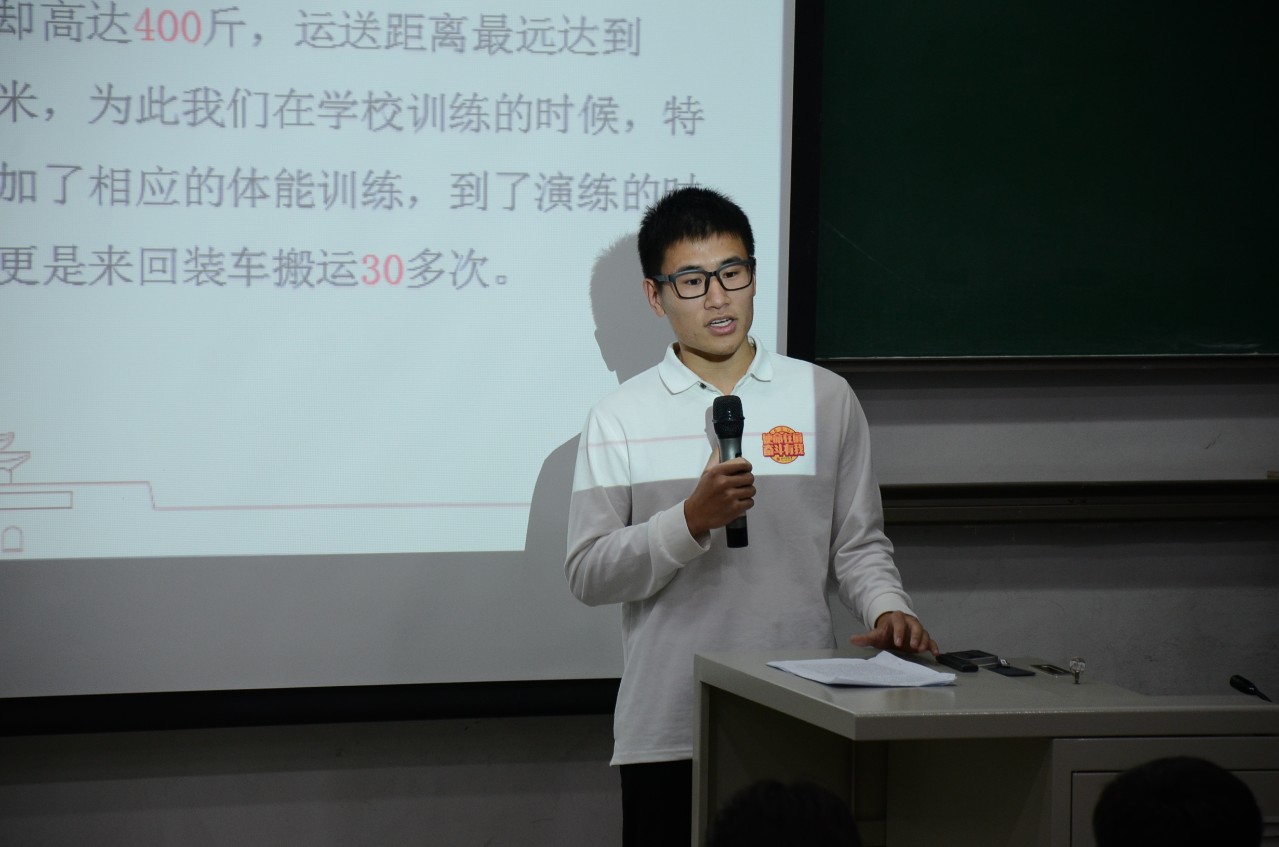 2018級的郭美旭同學說:“聽了這場宣講,我仿佛又回到了國慶當天,大家為看閱兵式聚集在師統講堂和食堂里的樣子。以前我一直以為學校只有自行車方陣,原來在我們看不到的地方還有負責燈籠施放、彩車疏散的同學們。作為北體大的一員,我既自豪,又榮幸。”