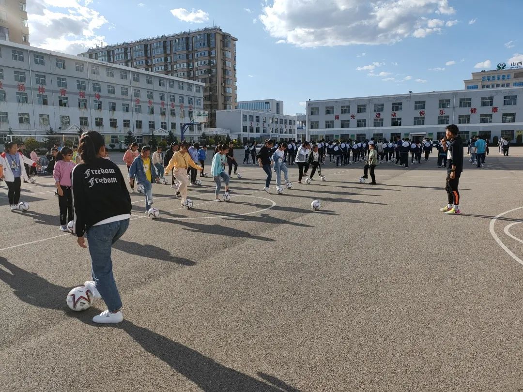 孩子們足球基礎薄弱,就從最簡單的身體控制和簡單帶球教起,針對技戰術訓練中的基礎環節,重新編排“足球操”,主要訓練目前校園足球中需要重點培養的腳下盤球、控球、傳球等動作。并將足球操作為學校的課間操,加以重點練習。