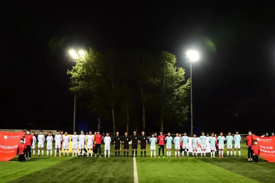 公平競賽旗、北京體育大學校旗、中國足球運動學院院旗、教育學院院旗以及裁判員、雙方運動員先后入場。與會人員全體高唱國歌。雙方隊員進行握手、挑邊儀式后,周啟迪為比賽開球后,激烈的爭奪正式開始