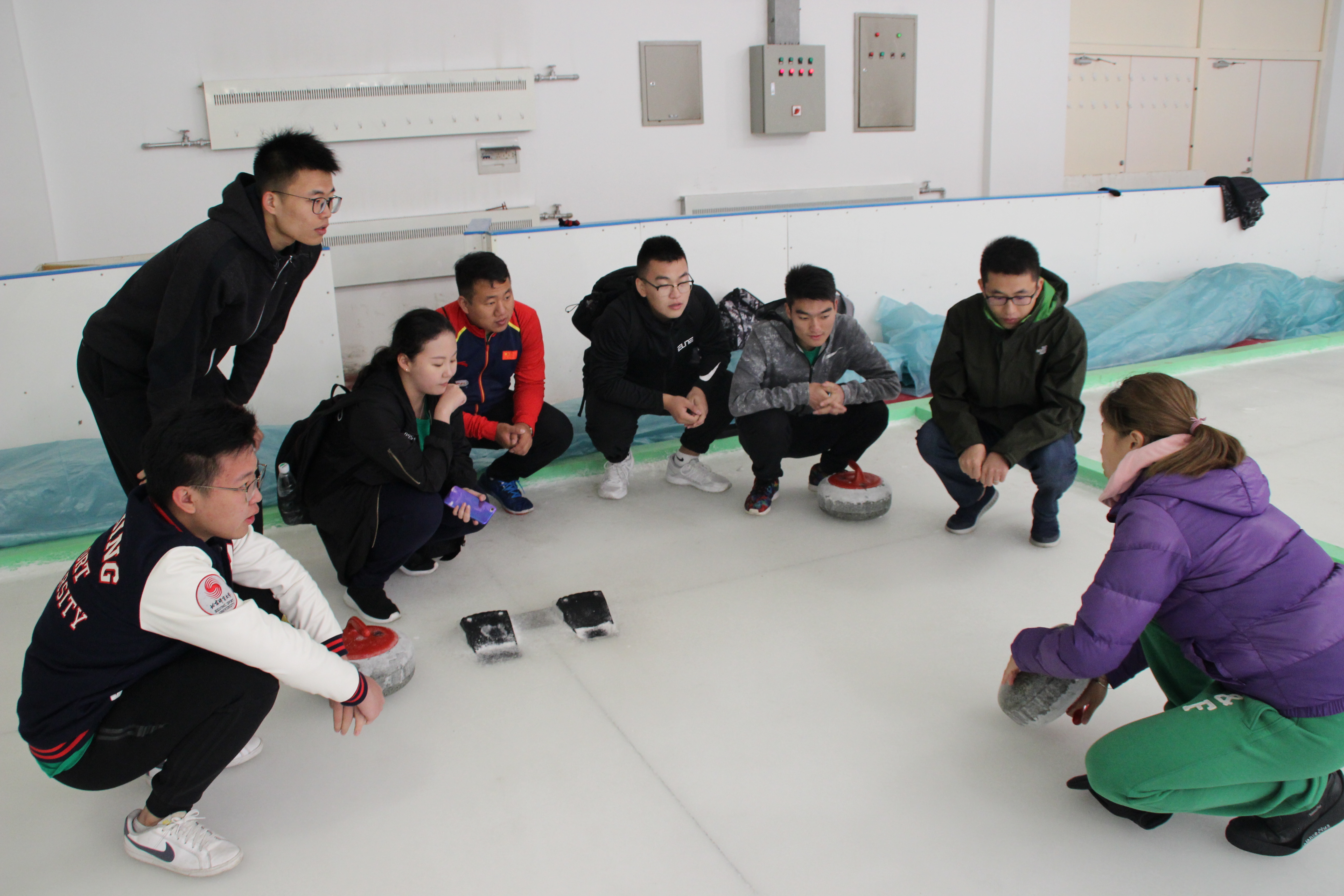 觀摩結束后,實踐團的成員們前往冰壺館進行冰壺體驗。中國女子冰壺隊隊員劉金莉熱情地接待了我們,并且耐心地對大家進行冰壺知識的普及和指導。劉金莉是中國女子冰壺隊的一名替補選手,她和隊友王冰玉,柳蔭,周妍,岳清爽合作奪取丹麥2011年女子冰壺世錦賽季軍、2010年溫哥華冬奧會女子冰壺季軍,2009年女子冰壺世錦賽冠軍,2009年哈爾濱大冬會女子冰壺冠軍等。實踐團的成員們都是第一次體驗冰壺運動,在學習的過程中收獲了許多樂趣。