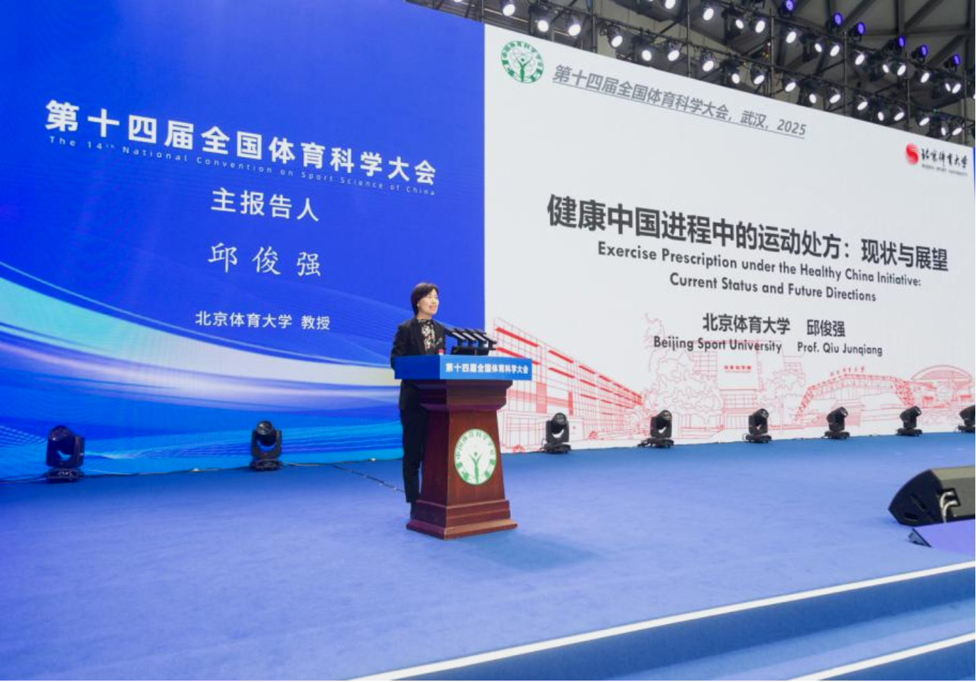 北京體育大學黨委副書記、常務副校長高峰出席了開幕式。邱俊強教授受邀作大會主報告,題為“健康中國進程中的運動處方:現(xiàn)狀與展望”,圍繞運動處方在慢性疾病防控與主動健康領域的核心價值,著重闡述了科學循證與個性化的關鍵環(huán)節(jié)。