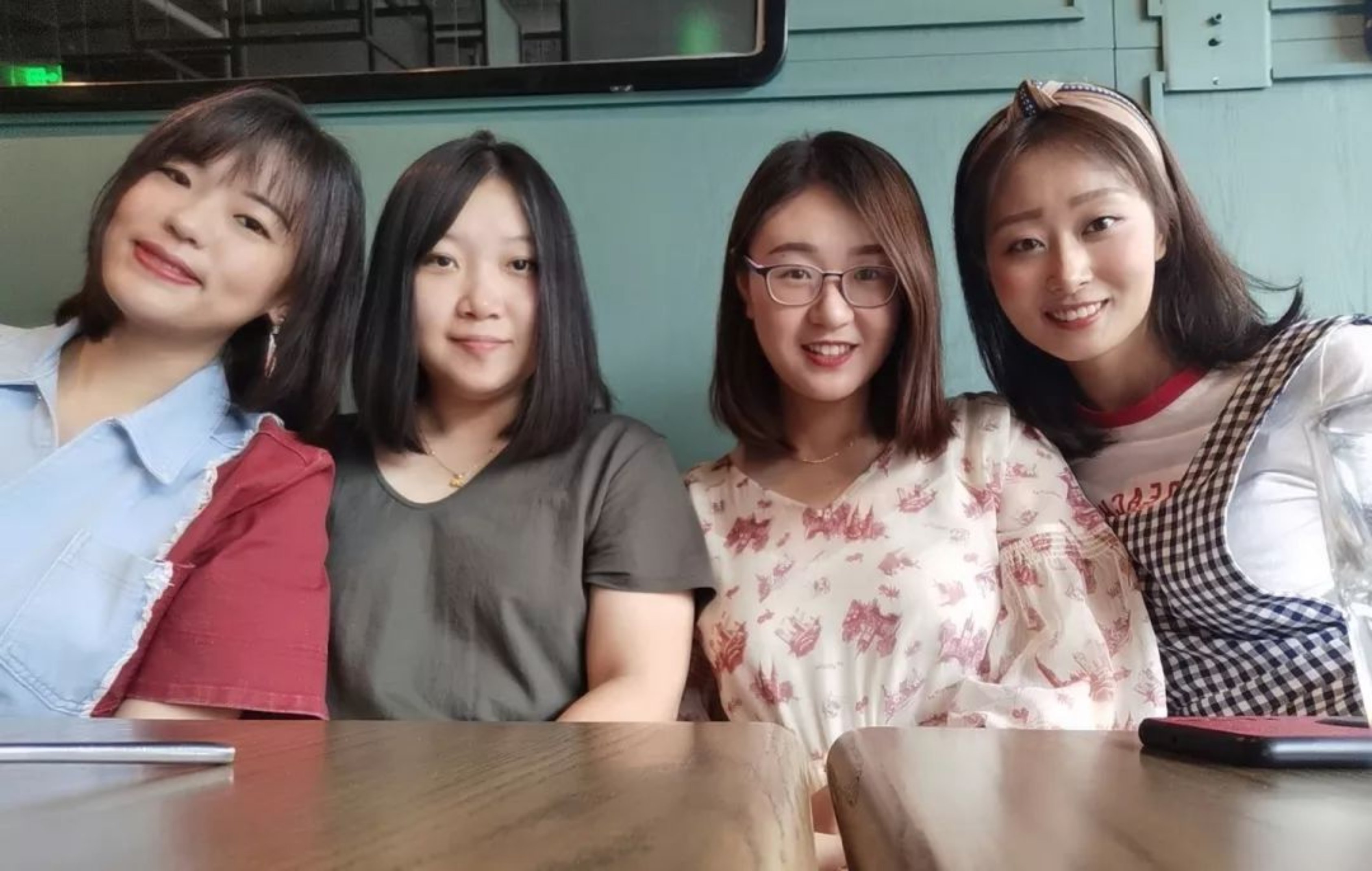 2019年夏,秦夢文(右二)與舍友時隔8年的重聚