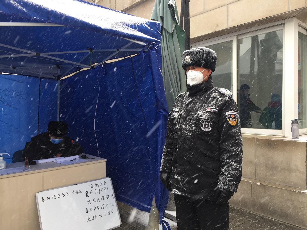 在防控工作中,保衛部與組織部、校醫院、后勤管理處等部門密切配合,落實疫情防控工作,除在家自我觀察人員外,全員動員全員上崗,先后參與了校門封閉值守、國家隊訓練基地區域封閉夜間施工、昌平區馬池口鎮臨時隔離觀察點值守、各主要辦公區域、家屬區頤清園社區疫情防控值守等安保工作。特別是近日,北京連降大雪,寒風刺骨,保衛部從領導到安保人員均櫛風沐雪,不分白天黑夜地奮戰在學校疫情防控的工作中。