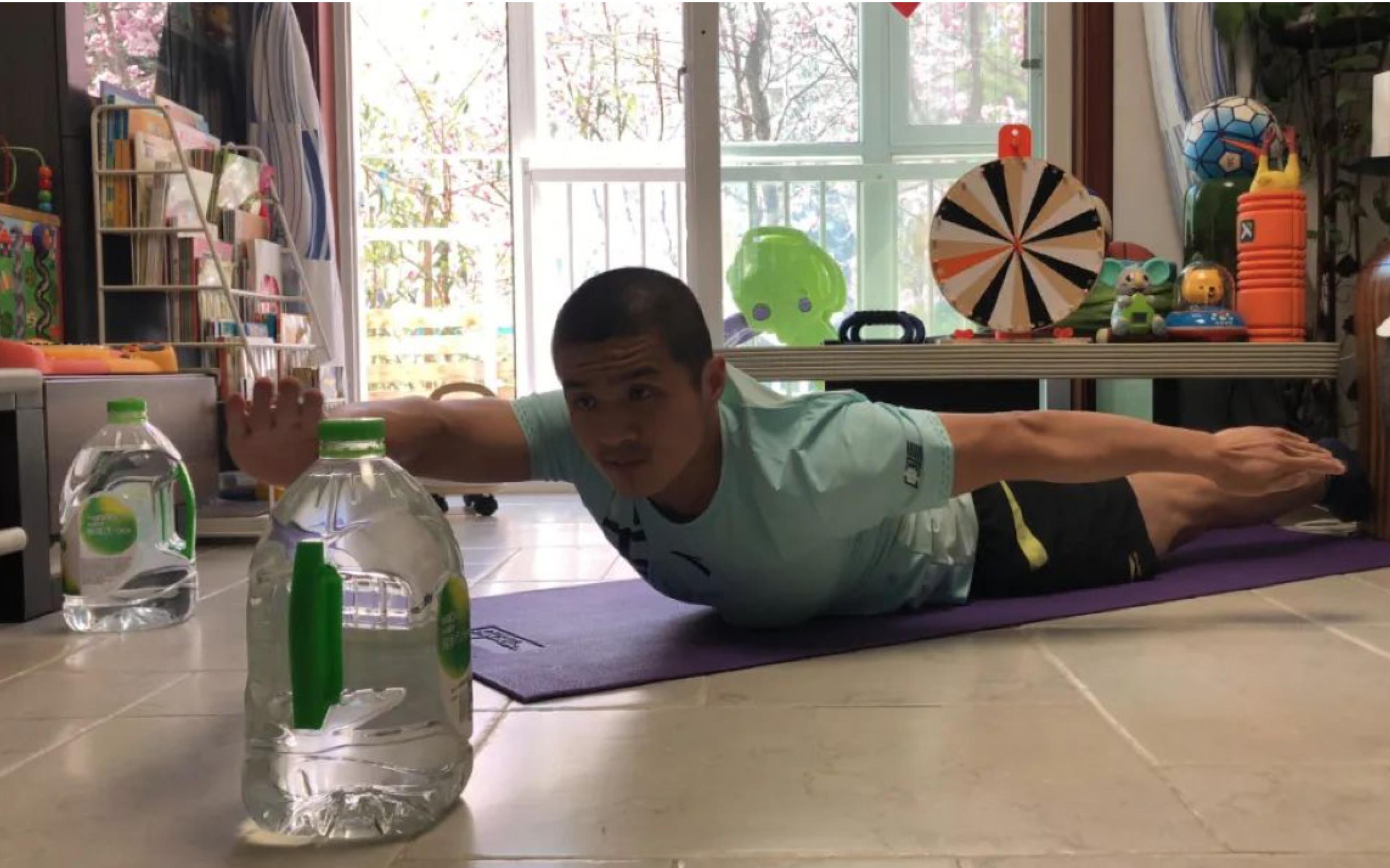 “我們學校的健身健美課已經開了五周了,每周三次專項課,一節課90分鐘,由于學生家中健身器械沒有學校設施齊全,我們建議學生們在家中利用礦泉水桶、油桶等自制一定負重的‘啞鈴’配合課程按照循序漸進的強度來練習?!北本w育大學足球學院健身健美專項老師鮑克說。
