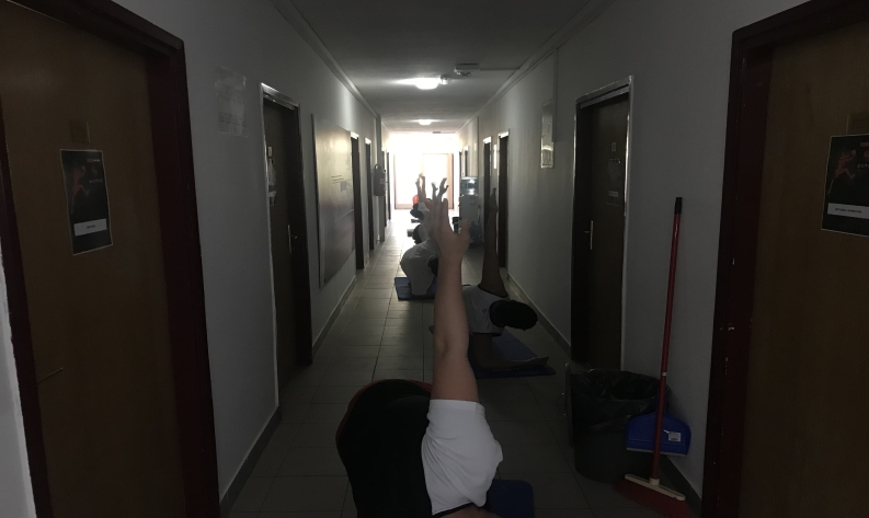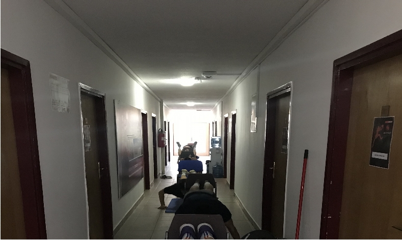 球員在走廊進行簡單訓練